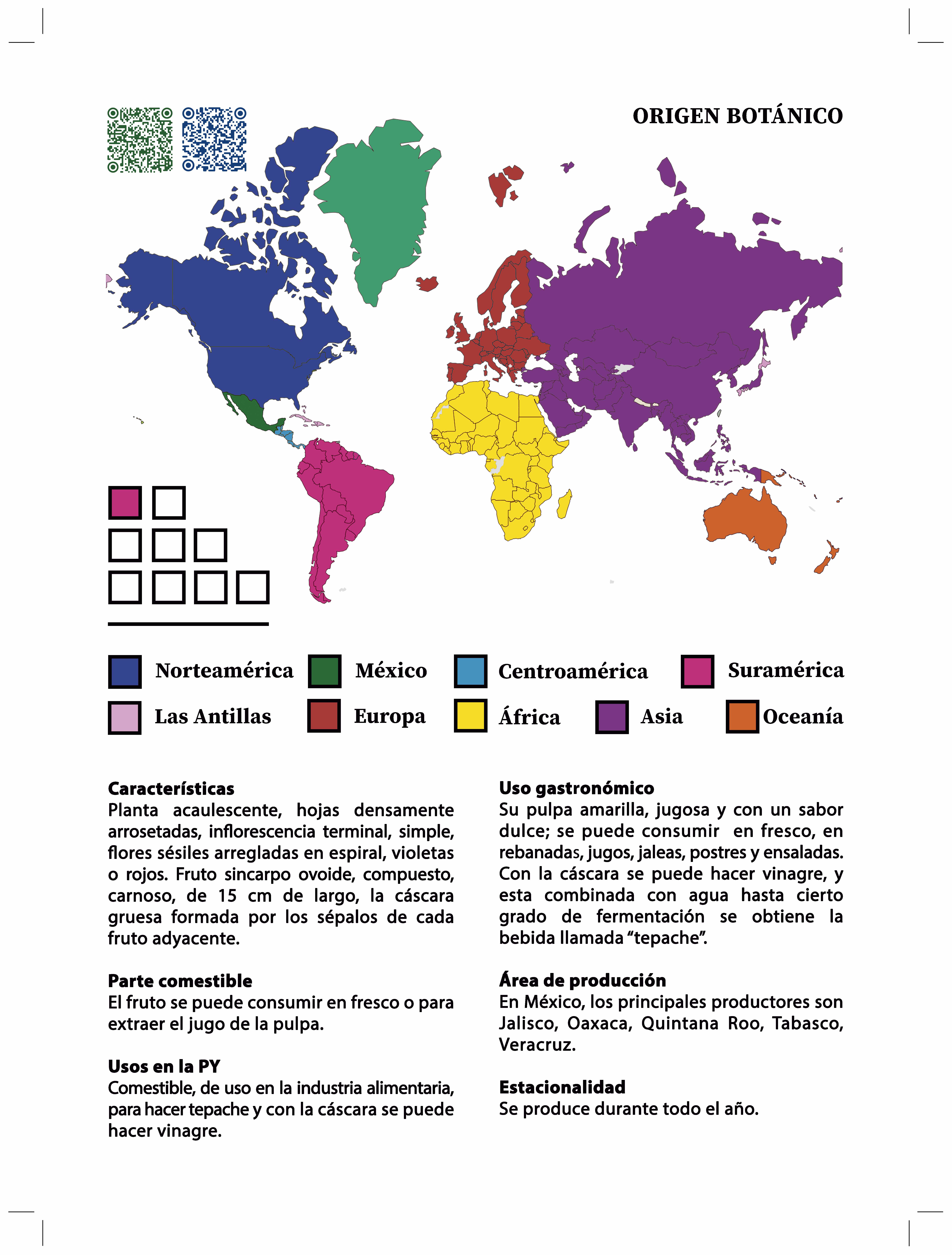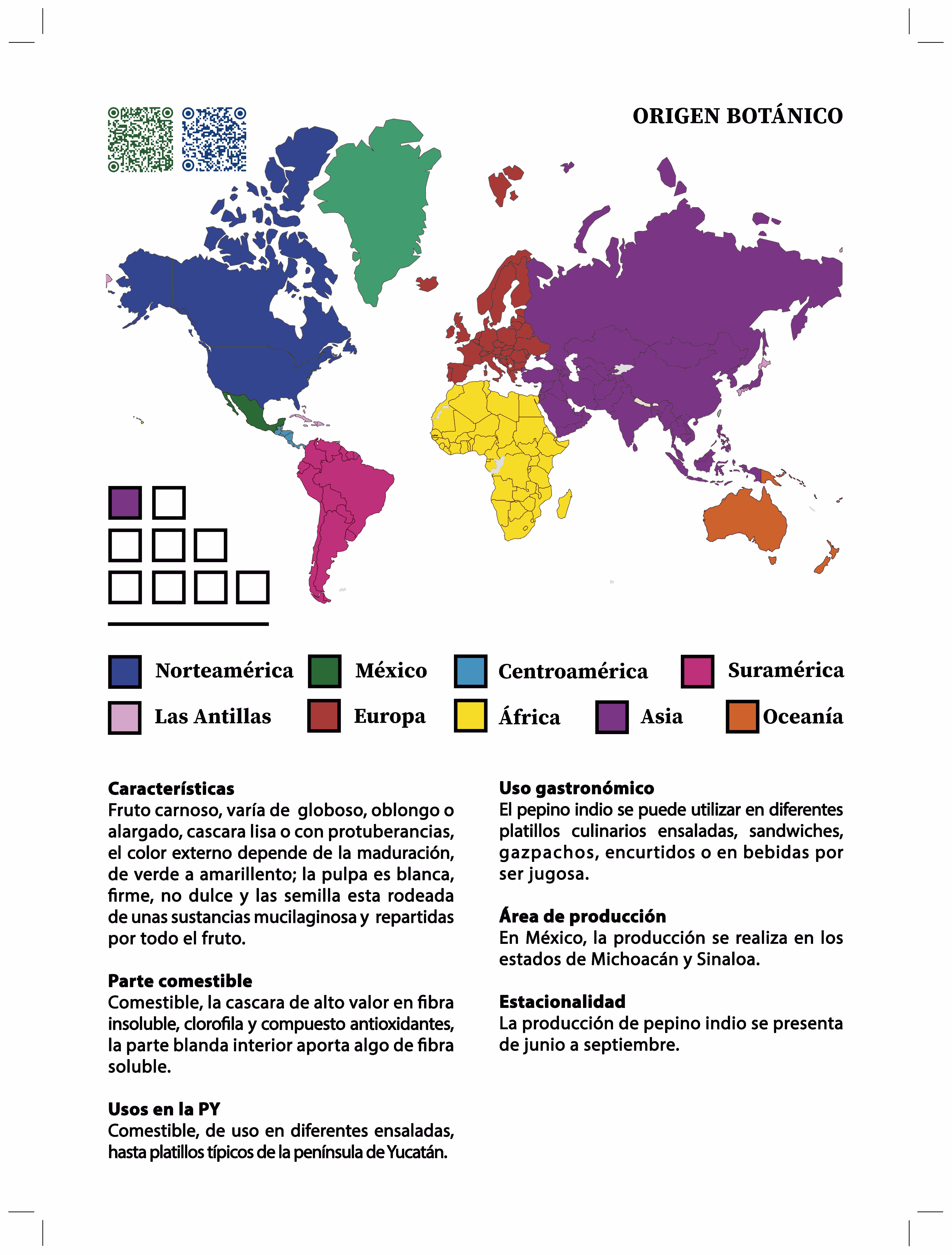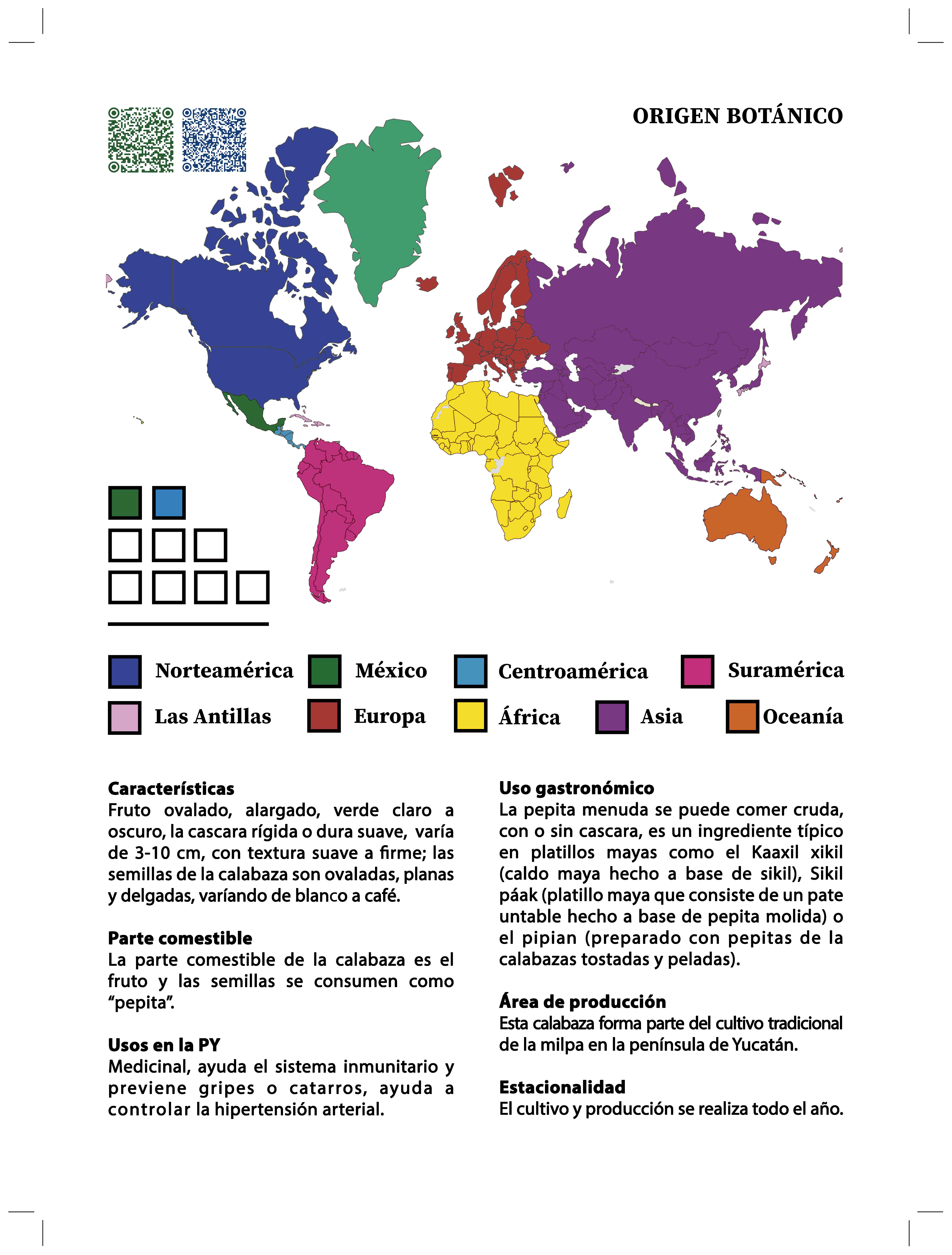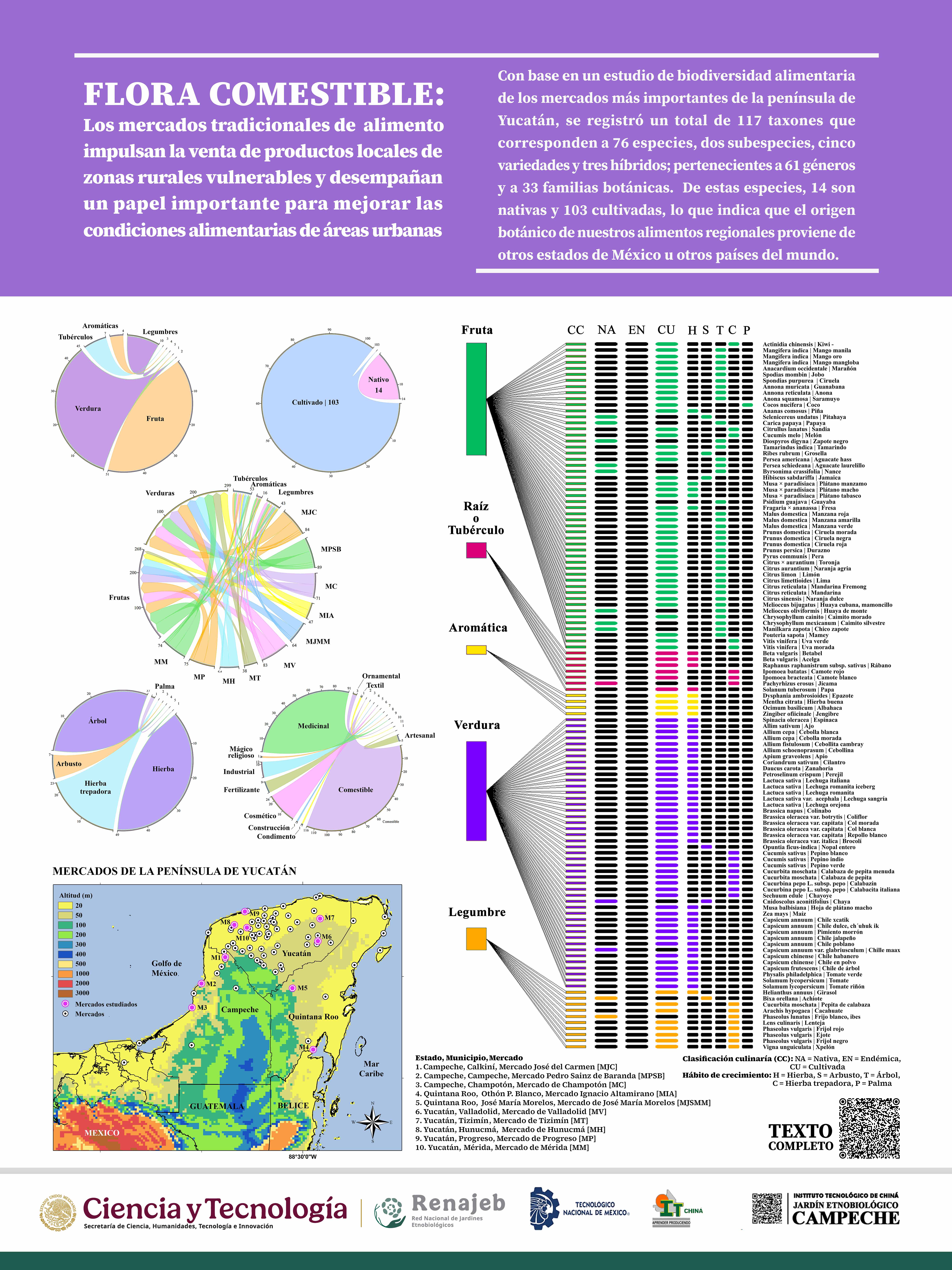 El libro incluye 78 plantas comestibles, para 28 familias botánicas, 58 especies, cuatro variedades y tres híbridos. De acuerdo a su uso culinario, se registraron 39 frutales, 29 hortalizas o verduras, nueve raíces o tubérculos, un cereal y un fruto seco. A cada especies se le incluyó la familia botánica a la cual pertenece, su nombre científico, nombre común en español y maya y su clasificación culinaria. También se le agregó un mapa del origen botánico que donde crecen de forma natural, dos códigos QR que asocian a Flora Mesoamérica y World Flora Online para recuperar información taxonómica y los nombres aceptados actualmente por la comunidad botánica. El libro incluye información sobre las características y partes comestibles de la planta, sus usos etnobotánicos y gastronómicos en la península de Yucatán, las áreas de producción y estacionalidad de cosecha.